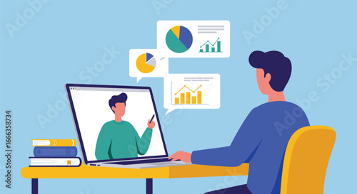 © Riyaj Vector Valley, Fototapeta premium Online learning session, virtual meeting concept, remote education, business presentation, data analysis, e-learning, professional training, webinar, digital classroom, remote work