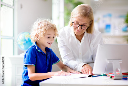 © famveldman, Fototapeta premium Online remote learning. School kids with computer.