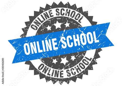 Obraz premium online school stamp. grunge round sign with ribbon