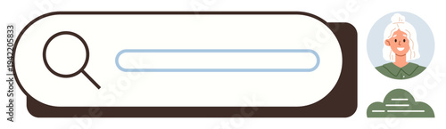 Obraz premium Online search, user identity, digital navigation, profile customization, interface design, user interaction. A search bar with a magnifying glass and an avatar profile icon. Online search and user
