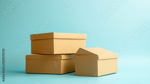 Fototapeta premium Online Shopping Boxes: Packaging and Delivery: The boxes are symbolic of the delivery process in e-commerce.