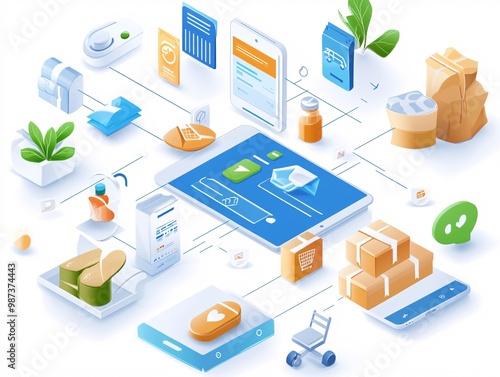 © PLE.POD, Fototapeta premium Online Shopping Delivery Process Isometric Illustration.