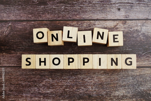 Fototapeta premium Online Shopping word alphabet letters on wooden background