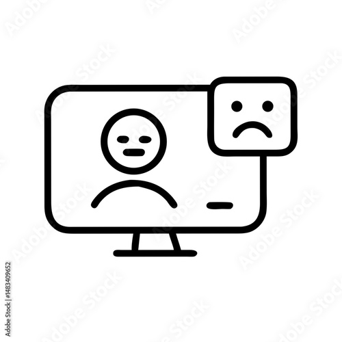 Naklejka premium Online Video Call with Sad Face Icon – Virtual Communication and Emotional Expression Symbol