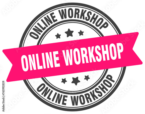 Obraz premium online workshop stamp. online workshop label on transparent background. round sign