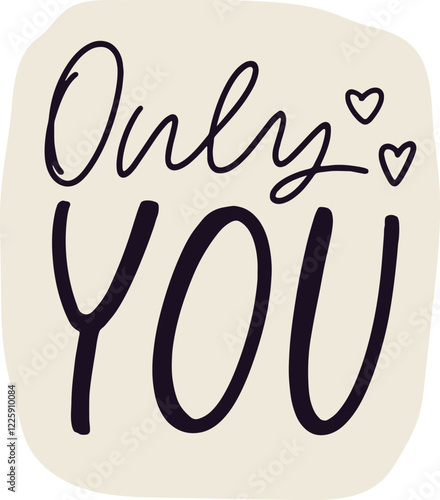 Fototapeta premium Only you handwritten calligraphy text. Hand drawn love script message vector design. Romantic quote for sticker, card and Valentine's day greeting.