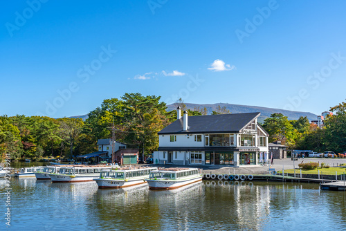 Naklejka premium Onuma Quasi-National Park. Sunny day scenery landscape. Oshima Subprefecture, Town Nanae, Hokkaido, Japan