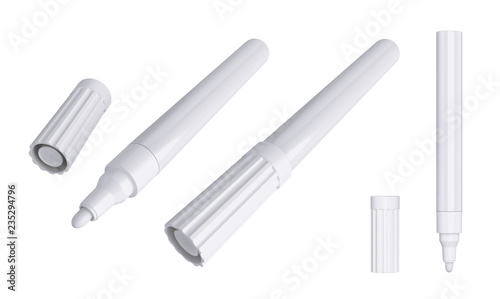 Fototapeta premium Open and closed markers isolated on white background, 3D rendering