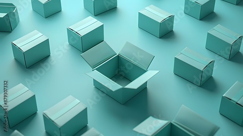 © Tackey, Obraz premium Open and Closed Turquoise Boxes