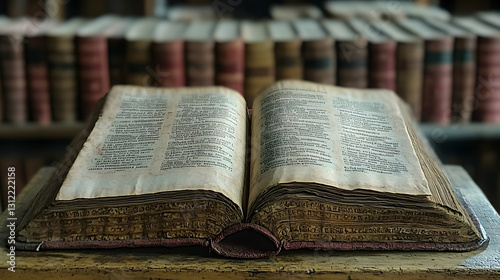 Obraz premium Open Antique Book in Library