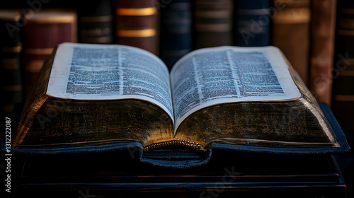 © muhaimin, Obraz premium Open antique book in library setting (2)