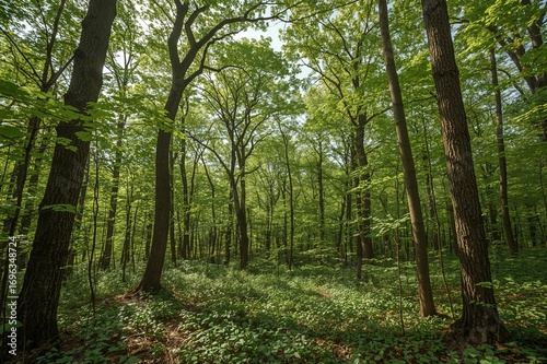 © DigitalDruid, Fototapeta premium Open area for your decoration with forest backdrop, abstract texture and design, summer nature theme featuring wood, kitchen elements, trees, and spring vibes