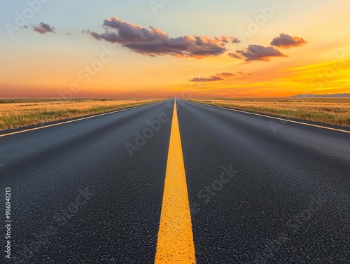 © SnapNest, Fototapeta premium Open asphalt road at sunset with dramatic sky.