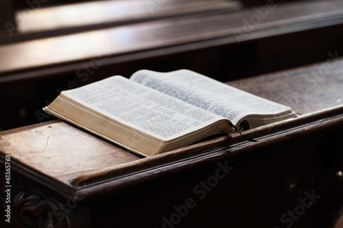 © Magdalena Kucova, Naklejka premium Open Bible on a church bench