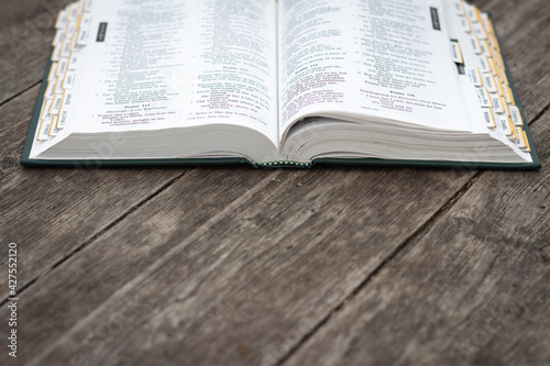 © Kara, Obraz premium Open bible on rustic weathered wood