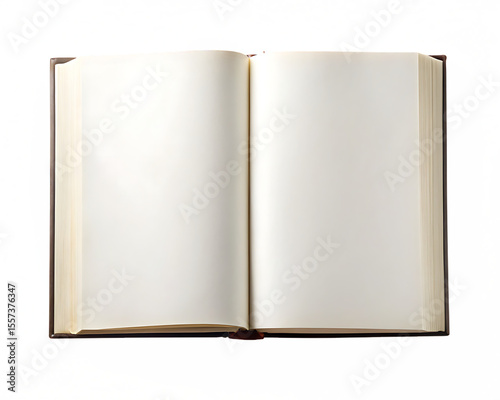© Rehana, Fototapeta premium Open blank book with cream pages and brown cover on white background Ai isolated on a transparent background