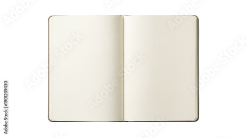 © Vitalo4ok, Naklejka premium Open blank notebook with empty pages for writing or sketching, isolated on transparent background