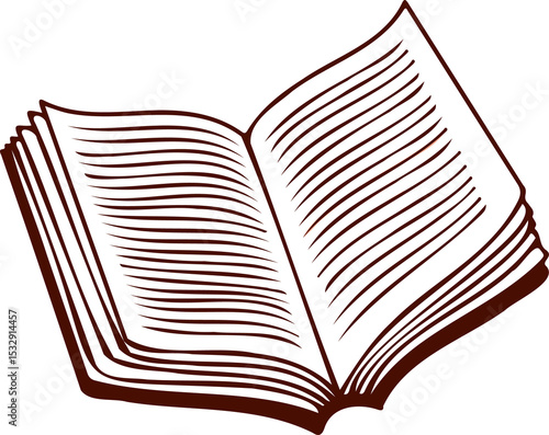 Fototapeta premium Open book illustration is showing stylized line art pages fanning out,...