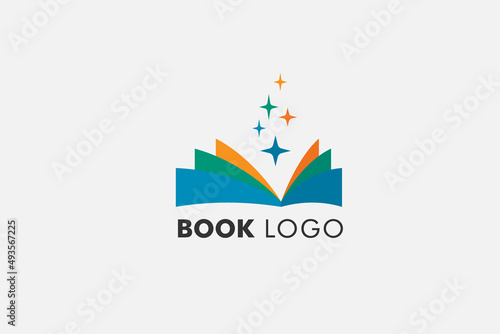 Fototapeta premium Open Book Logo with star Education Flat Vector logo Design