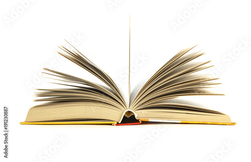 Fototapeta premium Open book lying on a white background