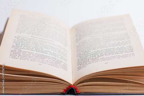 © Вячеслав Козырев, Obraz premium Open book on a white background. close up