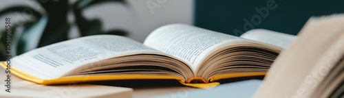 © Sansern, Obraz premium Open book on table, pages turned.