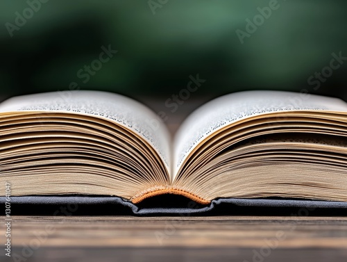 Fototapeta premium Open Book on Wooden Table: Education, Reading, Literature, Knowledge, Learning