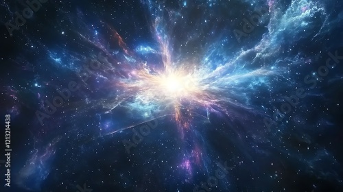 Fototapeta premium Open book surrounded by cosmic sky and glowing stars emitting magical energy...
