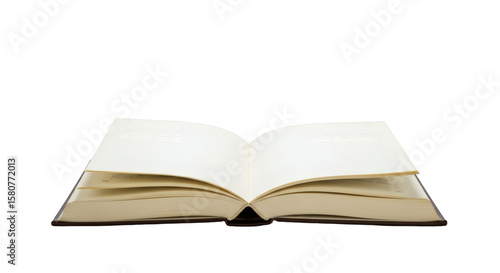 © HellouStock, Obraz premium Open book with blank pages against a black background.