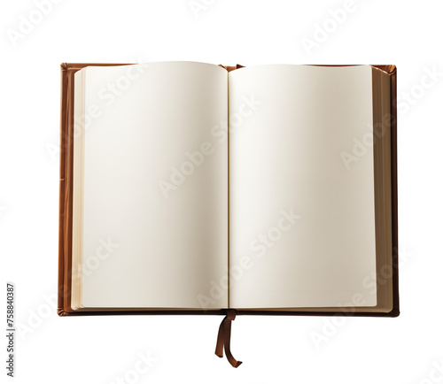 Fototapeta premium Open book with blank pages isolated on transparent background. Generative AI
