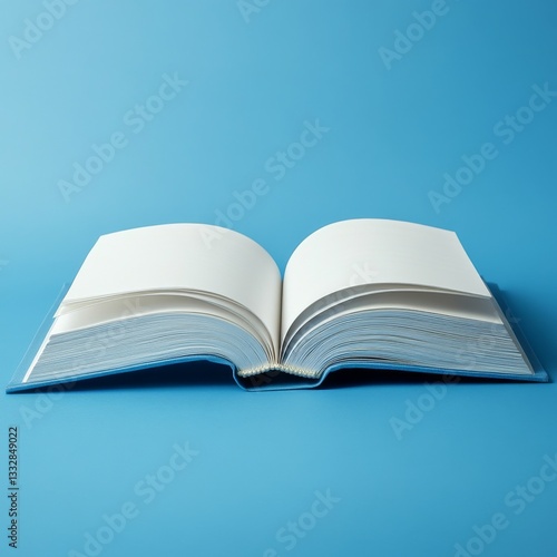 © Murad, Fototapeta premium Open Book with Blank Pages on a Light Blue Background, Ready for Your Creative Content