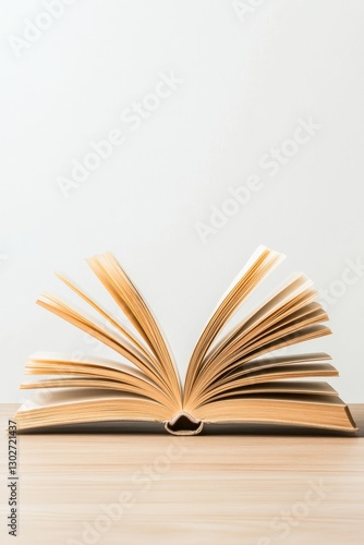 Fototapeta premium Open book with flipping pages captured in motion against a white background symbolizing knowledge storytelling education creativity and intellectual exploration