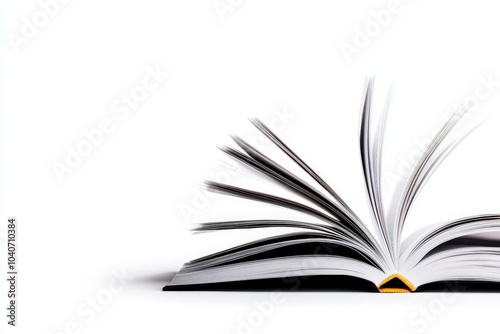 © GenBy, Obraz premium Open book with flying pages, white isolate background