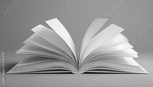 Obraz premium Open book with pages fanned out, grayscale, studio shot. Focus on clean paper