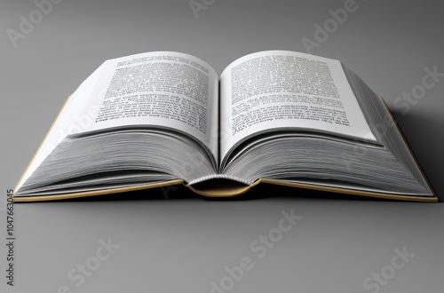 © upnowgraphics, Obraz premium Open Book with Unreadable Text on Gray Background