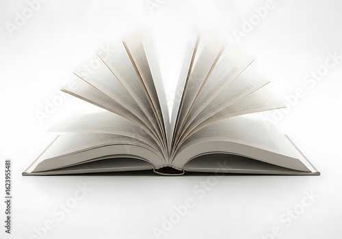 © roni, Fototapeta premium Open book with white pages on a white background symbolizing knowledge and reading