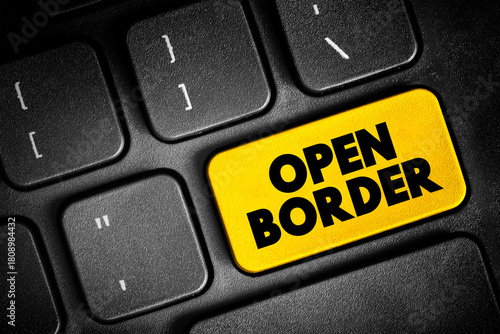 Fototapeta premium Open Border is a border that enables free movement of people between jurisdictions with no restrictions on movement and is lacking substantive border control, text button on keyboard