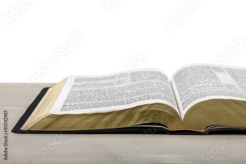 © BillionPhotos.com, Fototapeta premium Open. Detail of an old holy bible open with a beautiful and