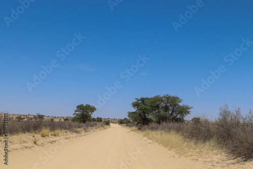 Fototapeta premium Open dirt road in the Kgalagadi, South Africa