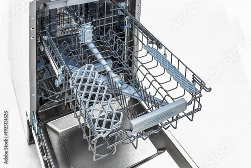 Obraz premium Open Dishwasher Interior On White