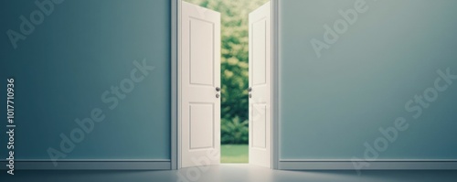 © Intelligent Horizons, Fototapeta premium Open door leading to a bright new world symbolizing a fresh start and opportunity for growth change and adventure