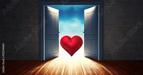 Fototapeta premium Open door to sky with red heart shape