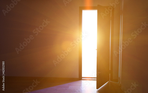 Fototapeta premium Open door with bright light outside