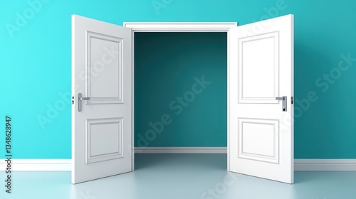 © willschlT, Naklejka premium Open Doors to a Teal Room