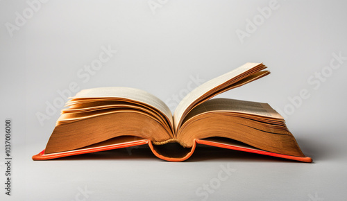 © rabbizz77, Fototapeta premium Open Educational Book Isolated on Minimalist Gray Background Unfolding Knowledge