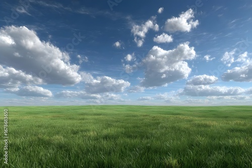 Fototapeta premium Open field under blue sky with white clouds.
