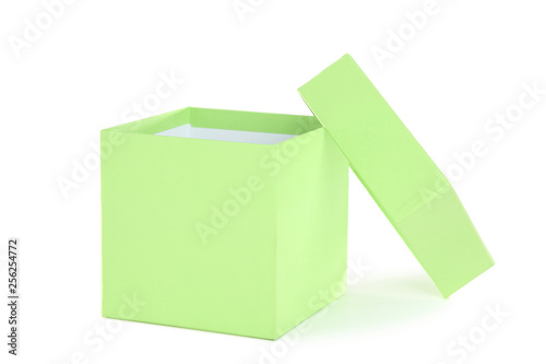 Fototapeta premium Open green gift box isolated on white background
