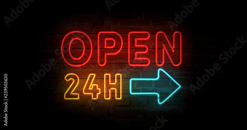 Obraz premium Open 24h neon sign