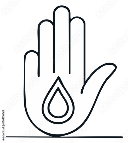 © Sheremeta, Obraz premium Open Hand Outline With Droplet Symbol Water Element Icon Protection Concept Minimalist