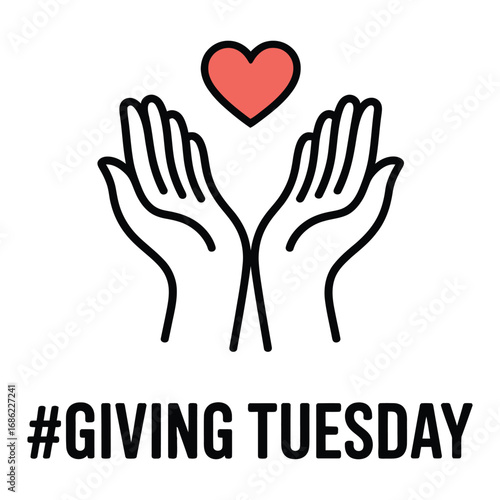 © Vector art Design, Fototapeta premium Open hands holding a red heart above the hashtag giving tuesday